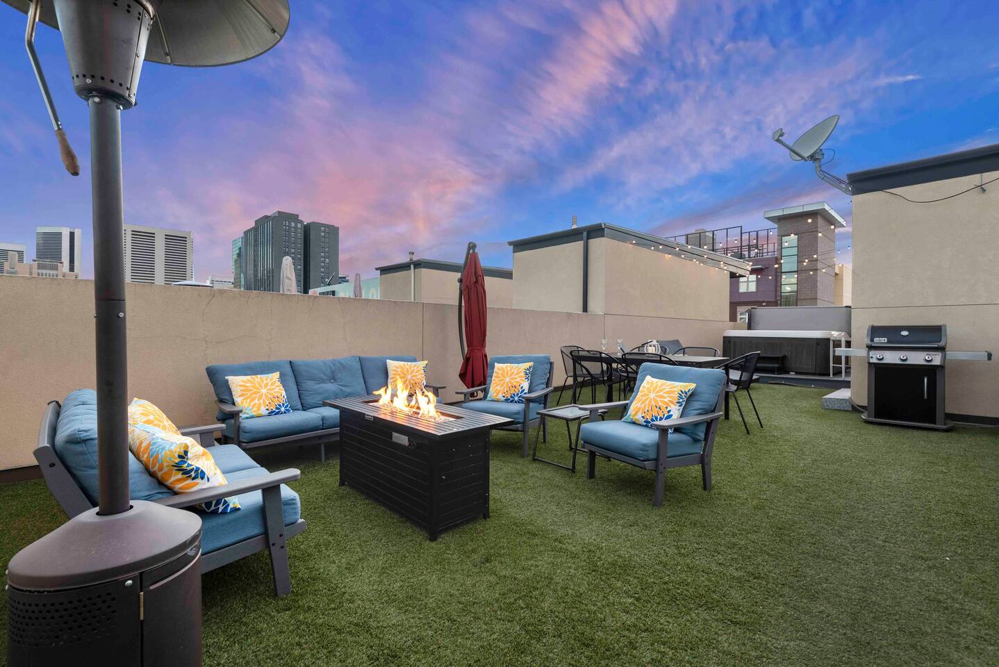 LAYOUT: -3 story, 4 level townhouse -3 bedrooms (2 king beds, 2 queen beds, 1 sofa bed) -3.5 bathrooms. -2 bedrooms have a dedicated workplace (desk and chair) and there is a 3rd workspace in the hallway with a desk and chair. - Large and open living room, dining and kitchen areas. - Rooftop deck entertainment level with wet bar, outdoor entertainment area, dining table, fire pit and hot tub. ALL LEVELS are ACCESSIBLE by ELEVATOR All bedrooms are separate from living spaces and equipped with: - Smart TVs - Alexa Dots - Chargers & adapters. * LOWER LEVEL: -Bedroom 1 - Spacious guest bedroom is equipped with 2 queen beds, a hall bath with bath/shower combo, and a wall of glass that leads to a lovely private backyard. The backyard features a fire table and seating, providing a perfect space to relax and unwind. -Private 2 car garage *MAIN LEVEL: - Modern and open with spacious living, dining and kitchen areas. - A fully equipped European style kitchen, with custom Berloni cabinets, quartz countertops, a 5-burner gas range, and a breakfast bar that seats 4. -A dining room that can accommodate large groups/families. -The living room features a see-through fireplace and comfortable seating area with a TV. -A small deck/balcony and a powder room complete this level. -We allow smoking/vaping of marijuana on this level inside with the air purifiers on. No tobacco smoking inside; outside is OK. *UPPER LEVEL: -Primary bedroom with a king-size bed and a sofa bed & TV. 5-piece en-suite bathroom and a large walk-in closet. Includes dedicated workspace (desk and chair). -Guest bedroom features a king-size bed, a walk-in closet, a full-length mirror and a dedicated workspace (desk/chair). -A hall bath with a bath/shower combo and a washer/dryer closet with an iron and ironing board are also available on this level. -Dedicated workspace in hallway (desk/chair) -A balcony *ROOFTOP DECK: -The rooftop deck is the epitome of luxury with a hot tub, a wet bar, a grill, a dining area, sun chairs and a lounge area with ample seating. -A large cantilevered umbrella and a fire pit complete this outdoor oasis that offers stunning views of the city. The townhome is centrally located in a perfect location for accessing all of the downtown neighborhoods by foot or are a short Uber/scooter ride away. Check out our guidebook for all our favorite spots and activities to make the most of your time in Denver. Let us know if you would like any suggestions or if there is anything we can do to make your trip as special and memorable as possible. Enjoy your time in Denver!